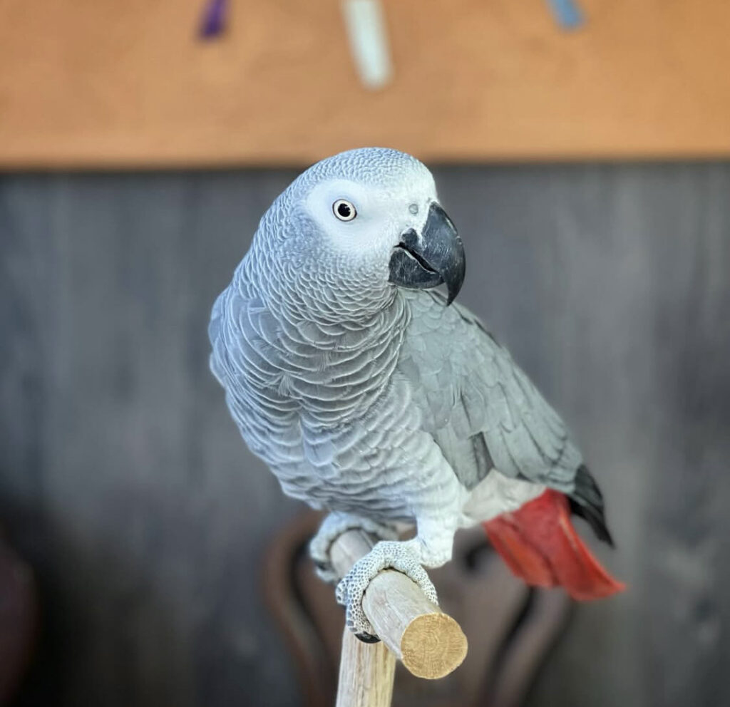 Sam is a loyal African Grey parrot who forms strong bonds with his owner. His affectionate nature makes him a wonderful lifelong companion.Sam thrives in a home where he can build a close relationship with his owner. His loyalty and trust create a fulfilling connection.To keep Sam happy, provide him with love, attention, and a secure environment. His loyalty is matched only by his desire to please his owner.